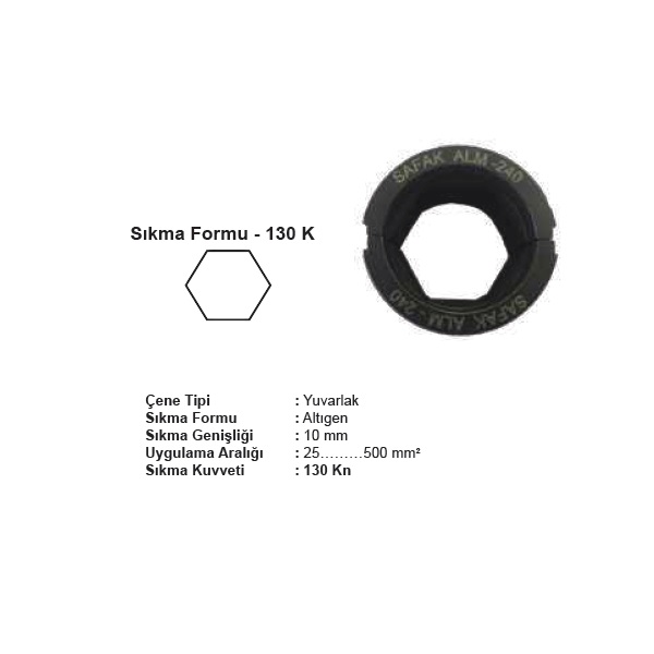 ŞAFAK YUVARLAK 130 kN ÇENE TAKIMI (ALÜMİNYUM) 185mm2